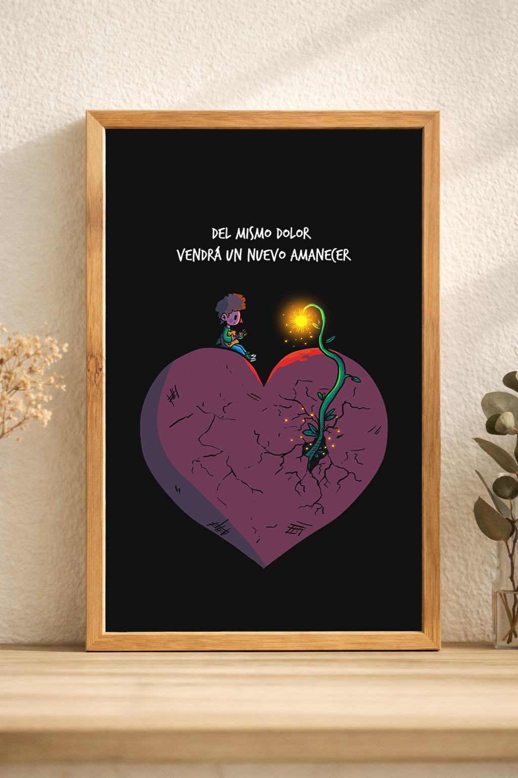 Cuadro marco de madera marupa, medida 20×30, con vidrio protector incluído, y lámina impresa en papel de 200 gramos.